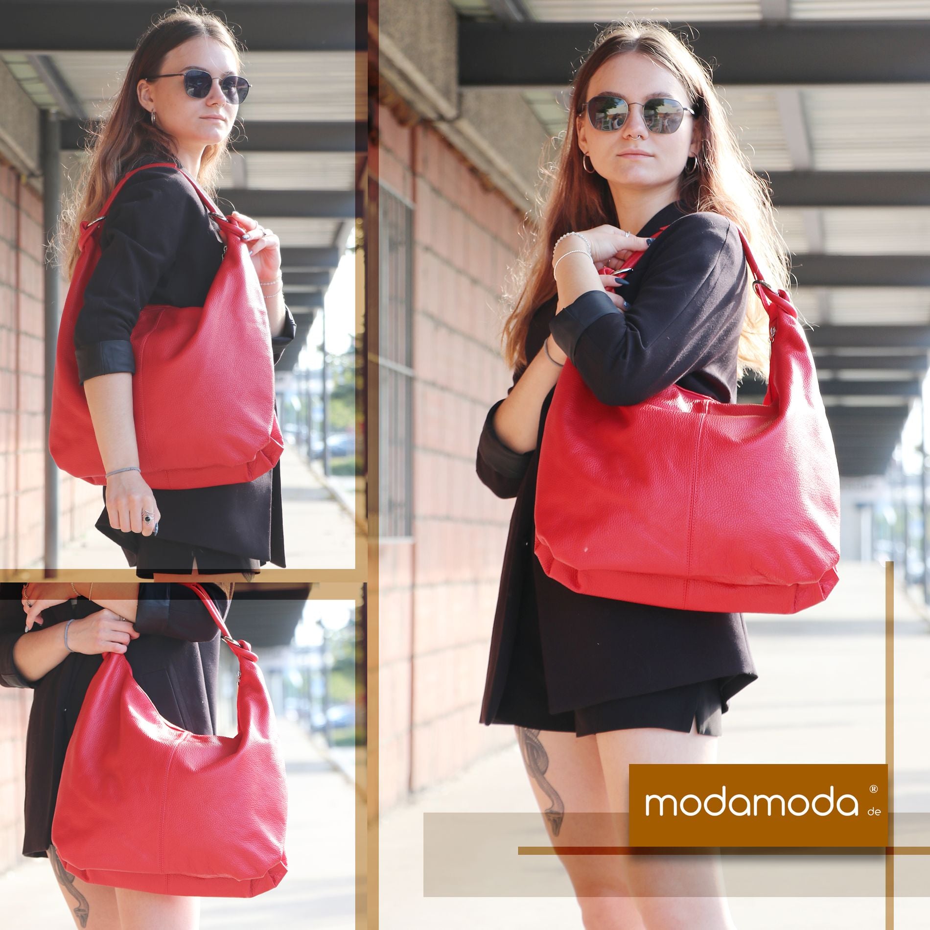 modamoda de 337 Damen Leder Schultertasche Shopper Large handmade in Italy