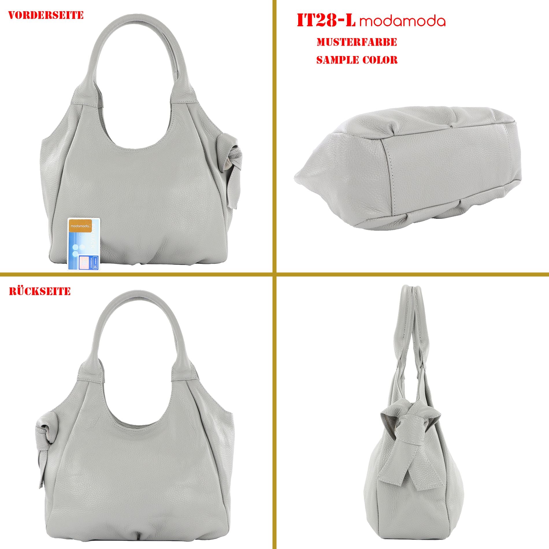 modamoda de - IT28 - ital Damen Schultertasche aus Leder