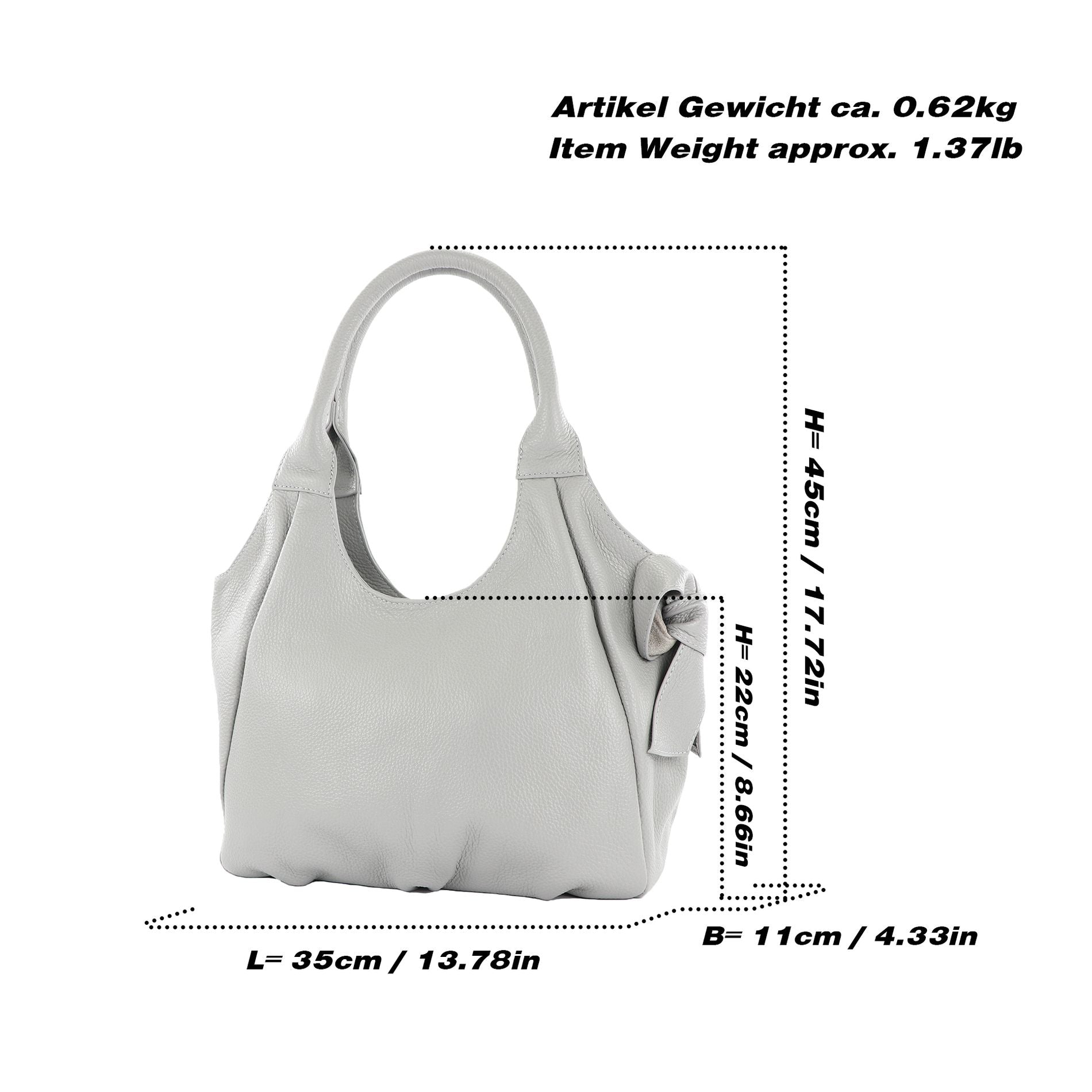 Gesamthöhe der Tasche mit Henkel ca.: 45 cm