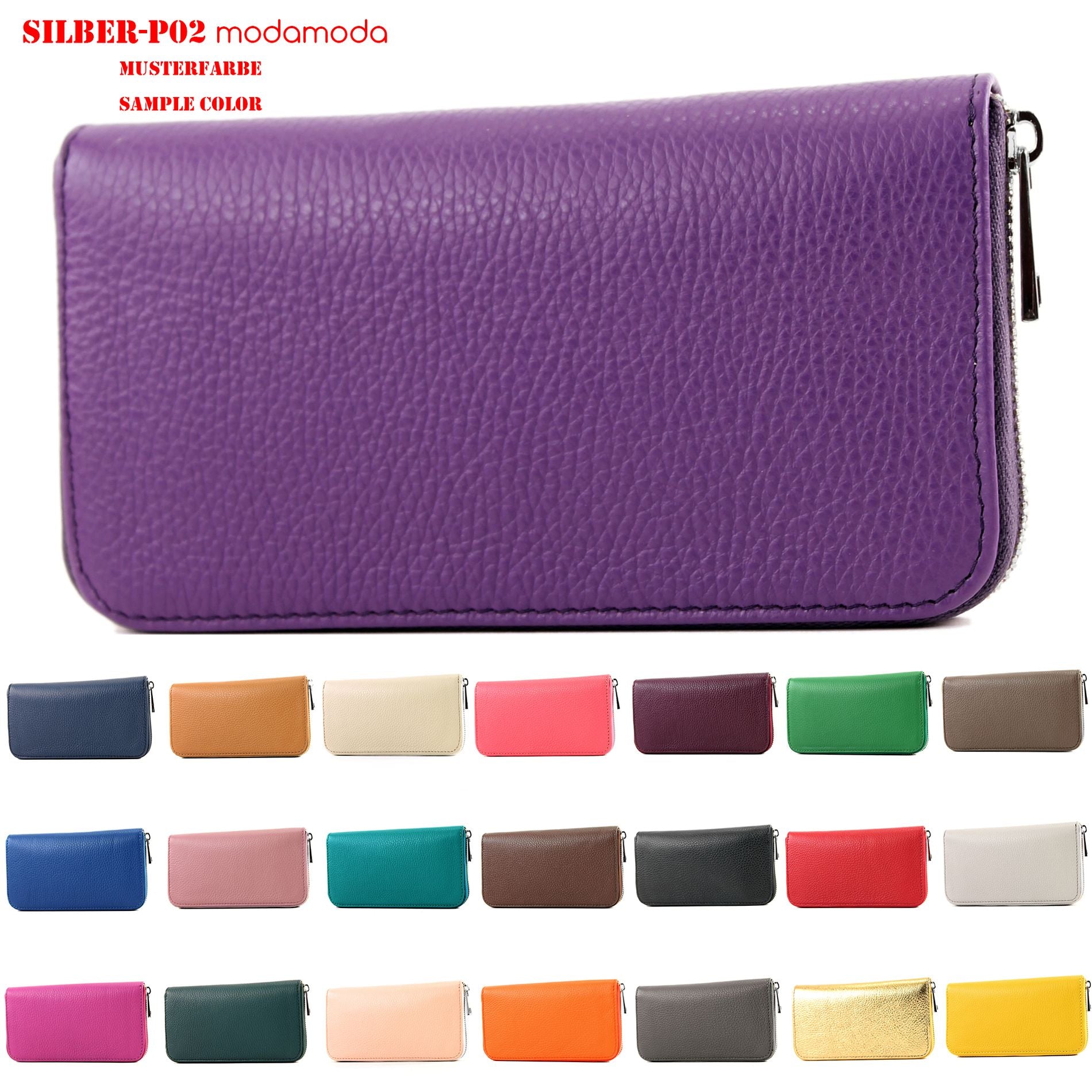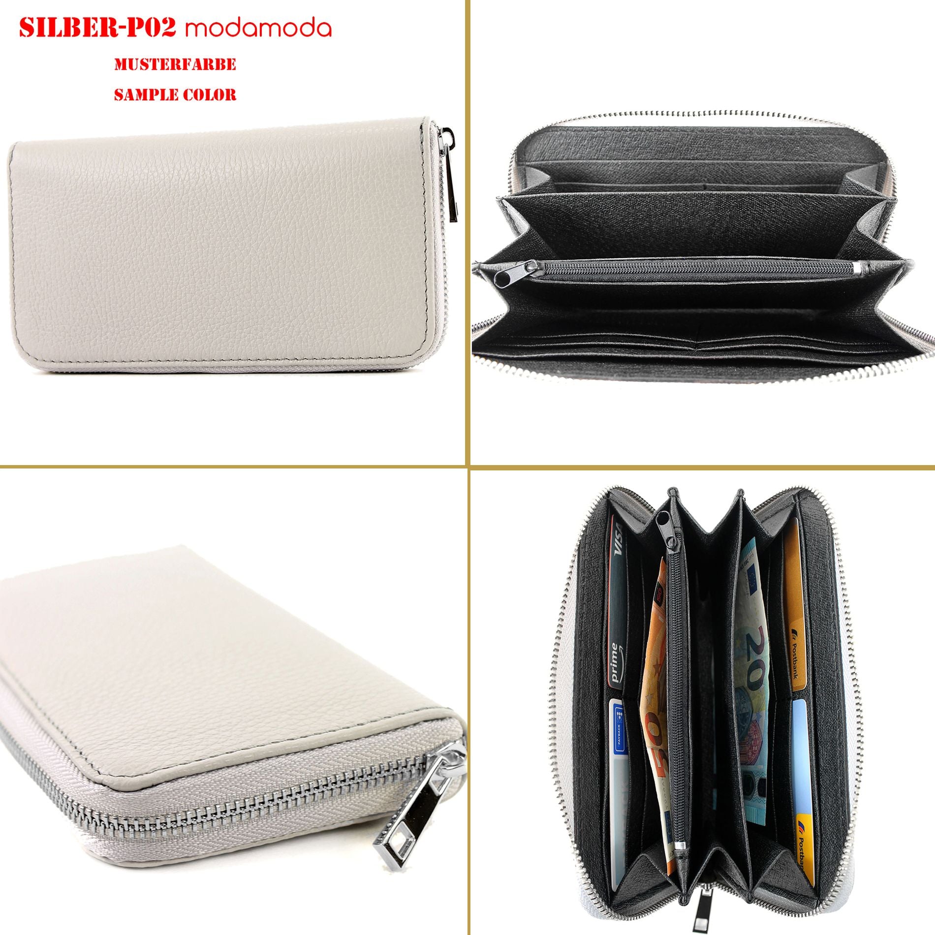 modamoda de SILBER-P02 Damen Leder Geldbörse Portemonnaie lang Handmade in Italy