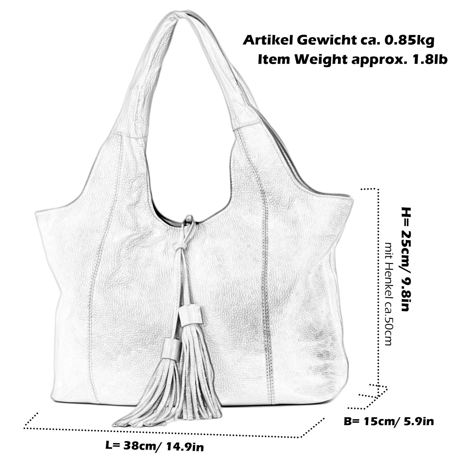 ein großes, geräumiges Hauptfach mit Reißverschluss durch ein großes Mittelfach ebenfalls mit Reißverschluss geteilt - DIN A4 geeignet (keine Ordner) - im Innenraum befinden sich zwei seitliche große Steckfächer für z.B. Ihr Smartphone geeignet sowie ein Reißverschluss-Fach - ein Außenfach mit Reißverschluss ist auf der Rückseite angebracht - stabile Tragegriffe zum Schultern ausreichend lang - verstärkter Boden - textiles kräftiges Innenmaterial - dekorativer Lederquasten-Anhänger