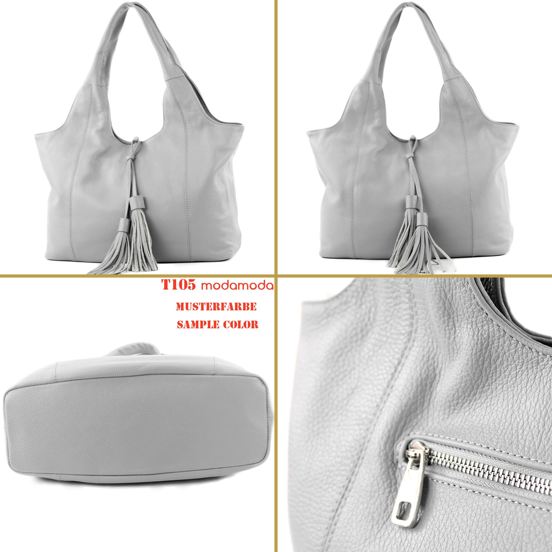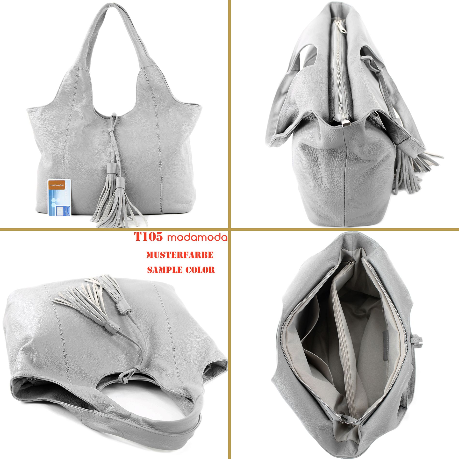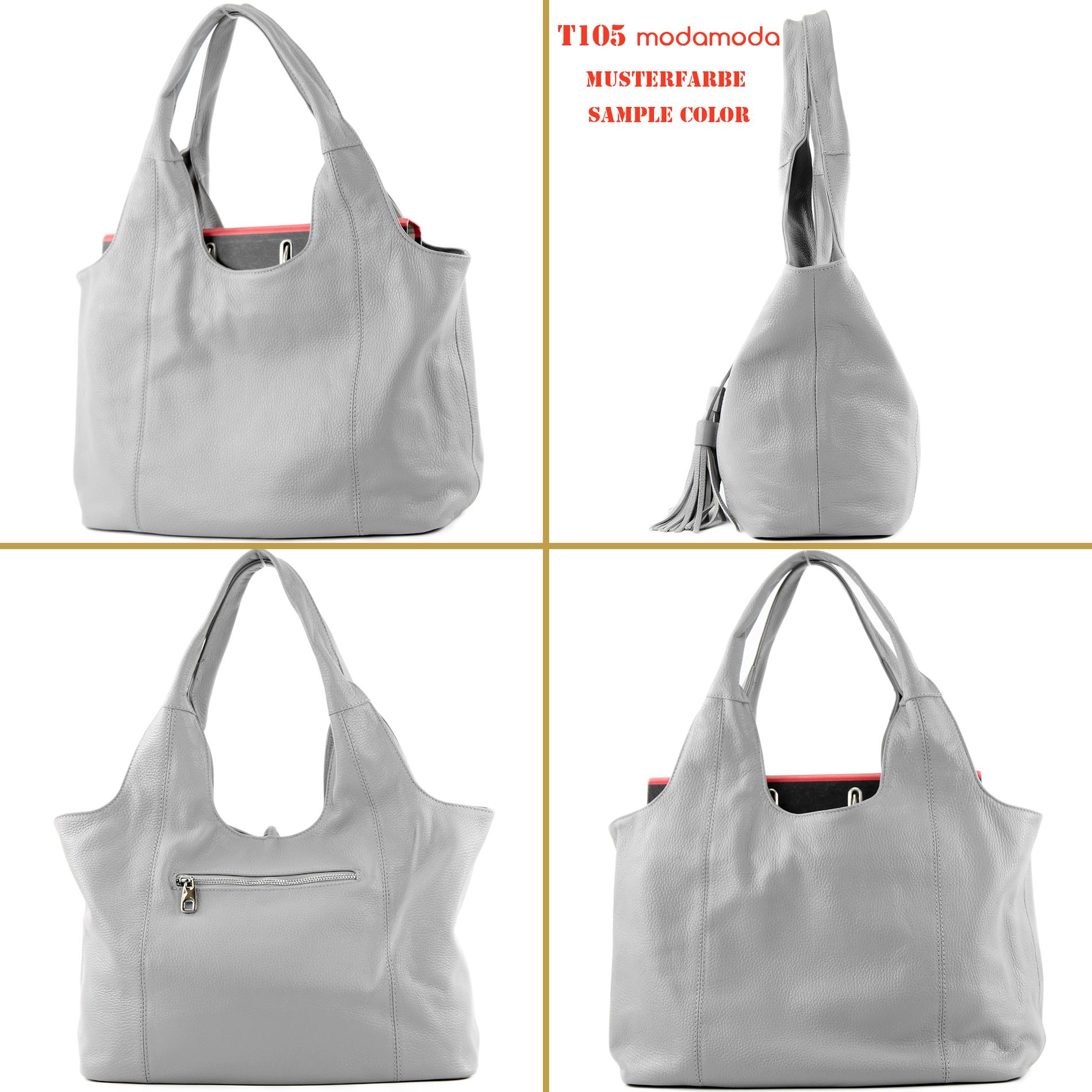 modamoda de - T105 - ital. Schultertasche Groß aus Leder