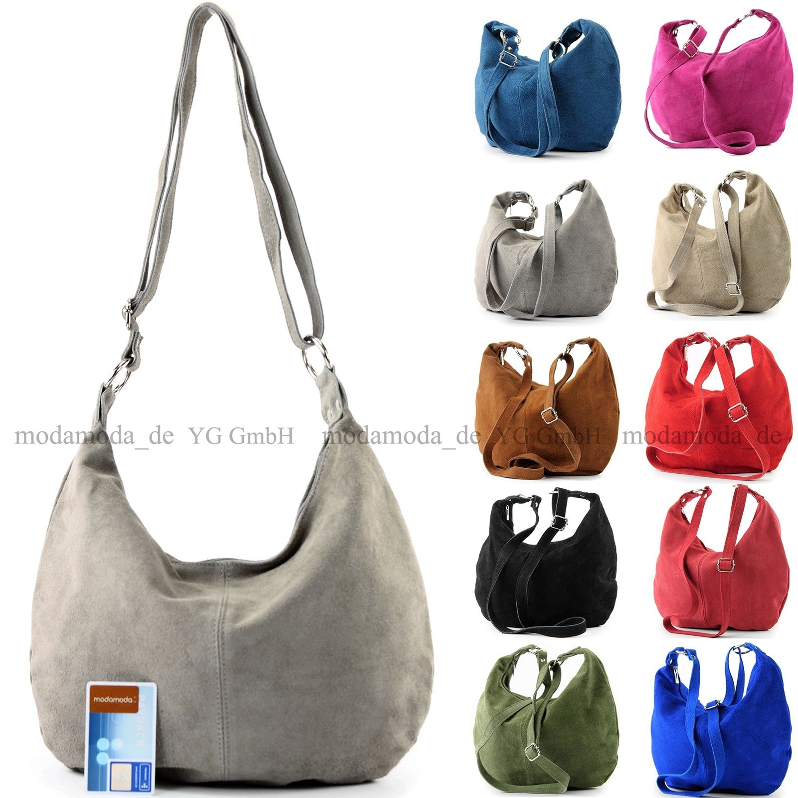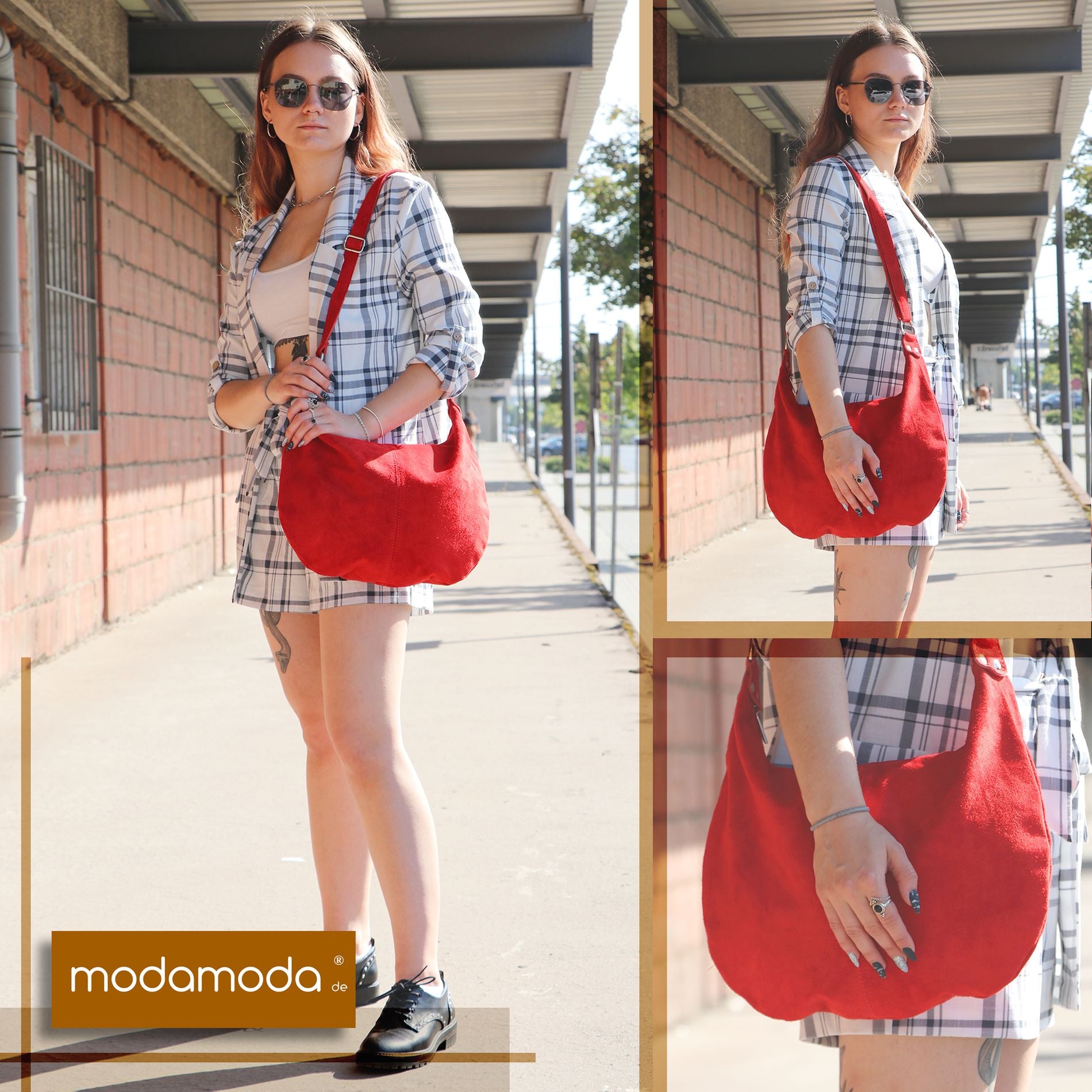 modamoda de - T123 - ital Umhängetasche Schultertasche Wildleder