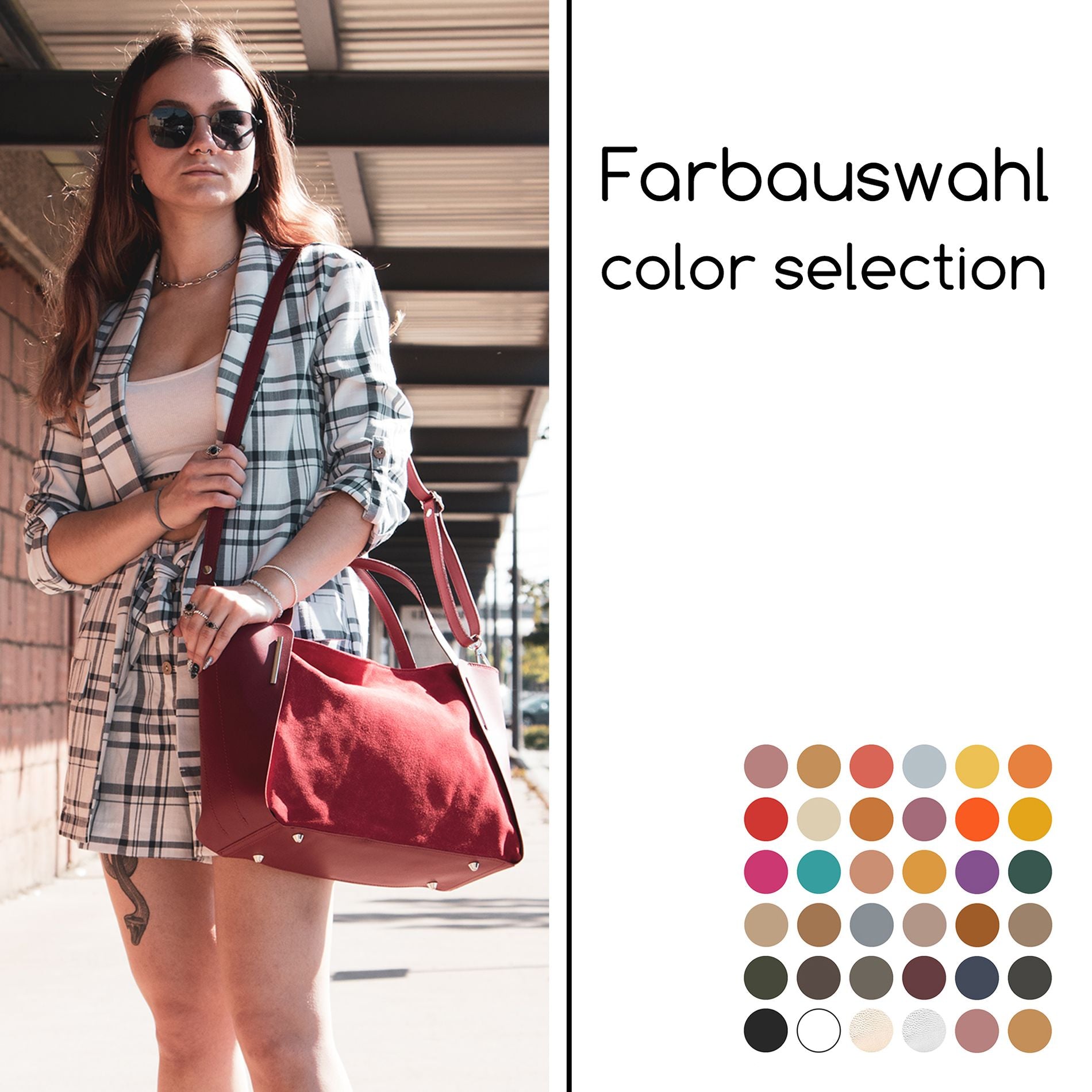 * Die Seitenteile, der Boden sowie die Tragegriffe sind aus Glattleder gearbeitet, die Vorder- und Rückseite aus weichem Wildleder - viele schöne Farben... *
