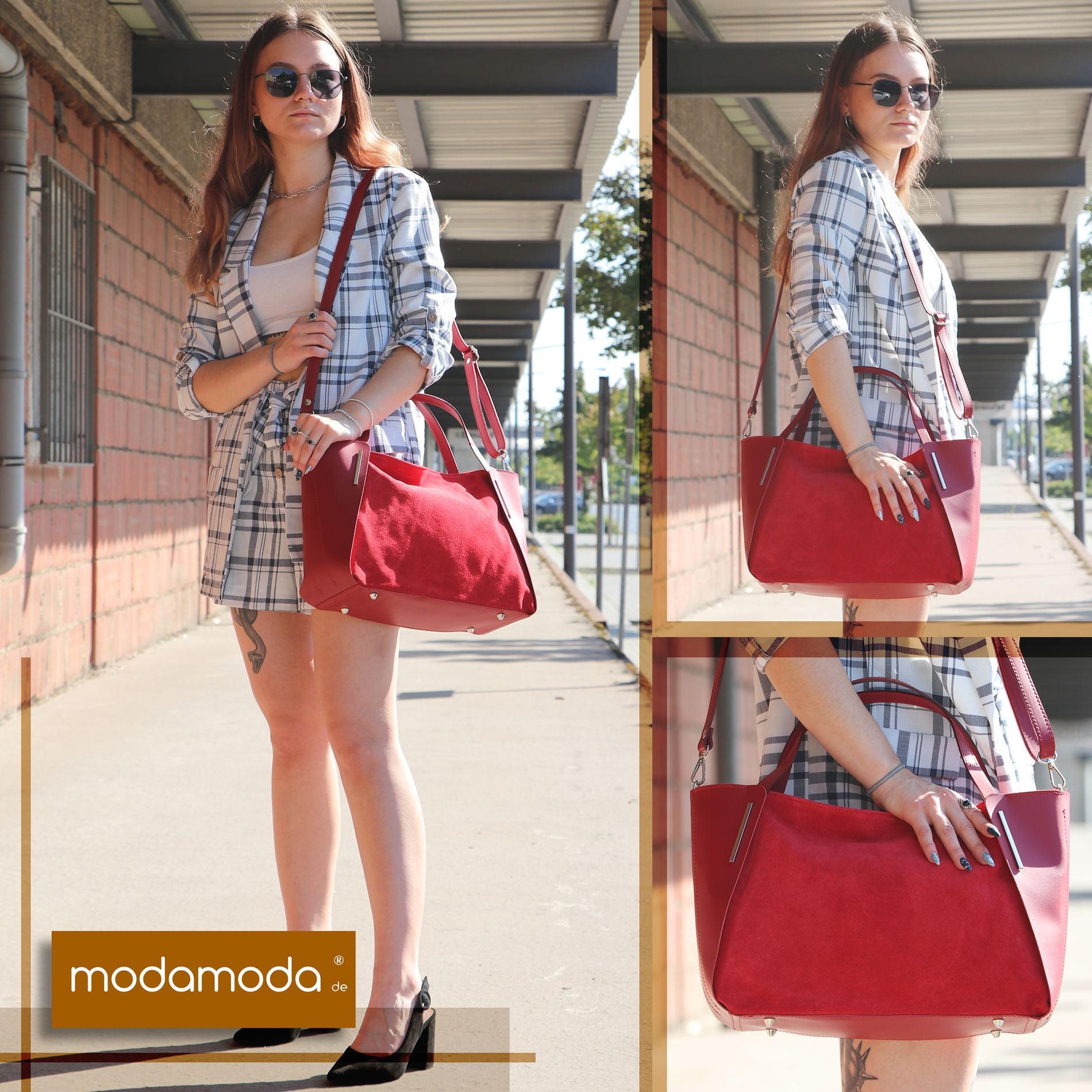 modamoda de - T126 - ital. Shopper Tragetasche Leder/Wildleder