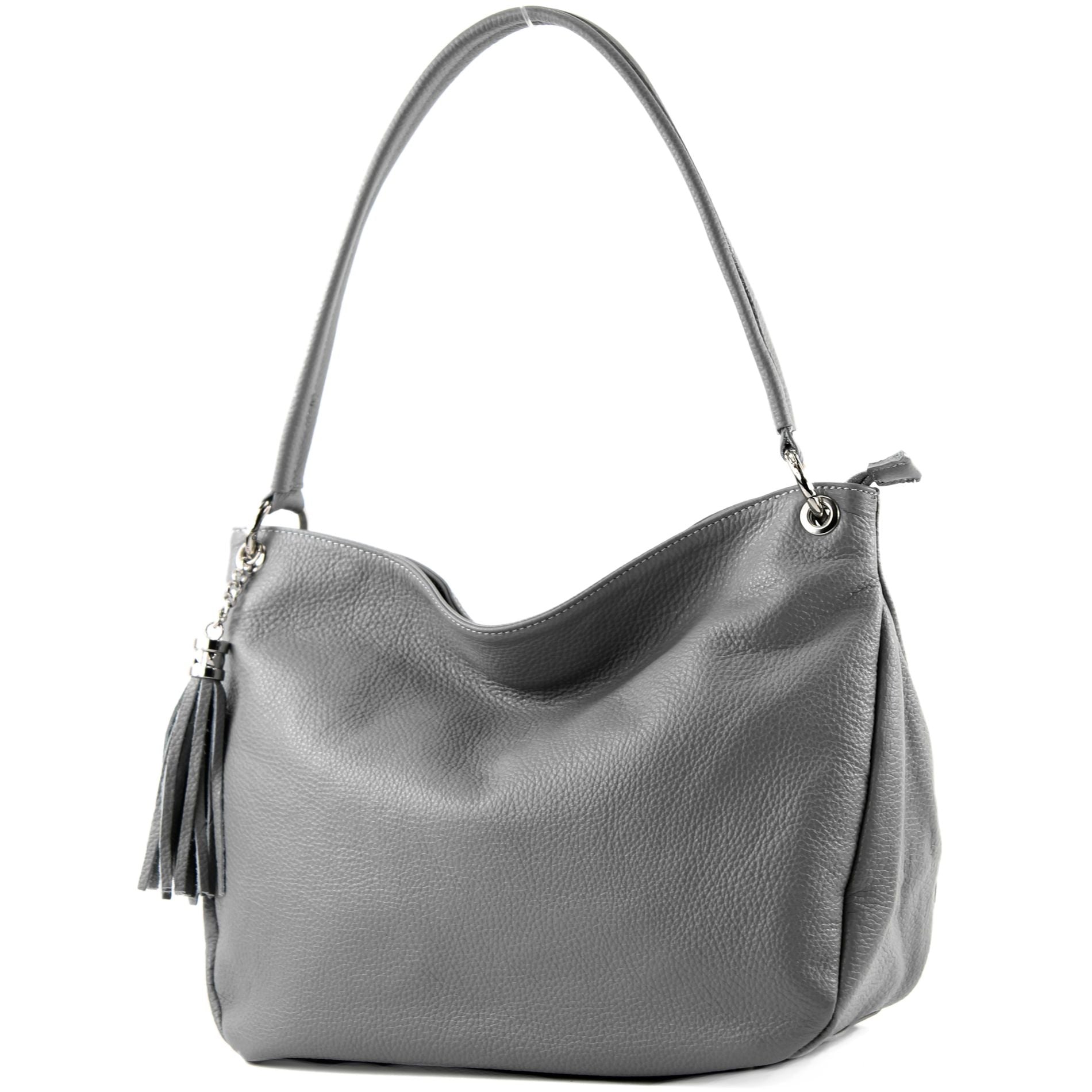 modamoda de - T154 - ital Schultertasche Umhängetasche aus Leder