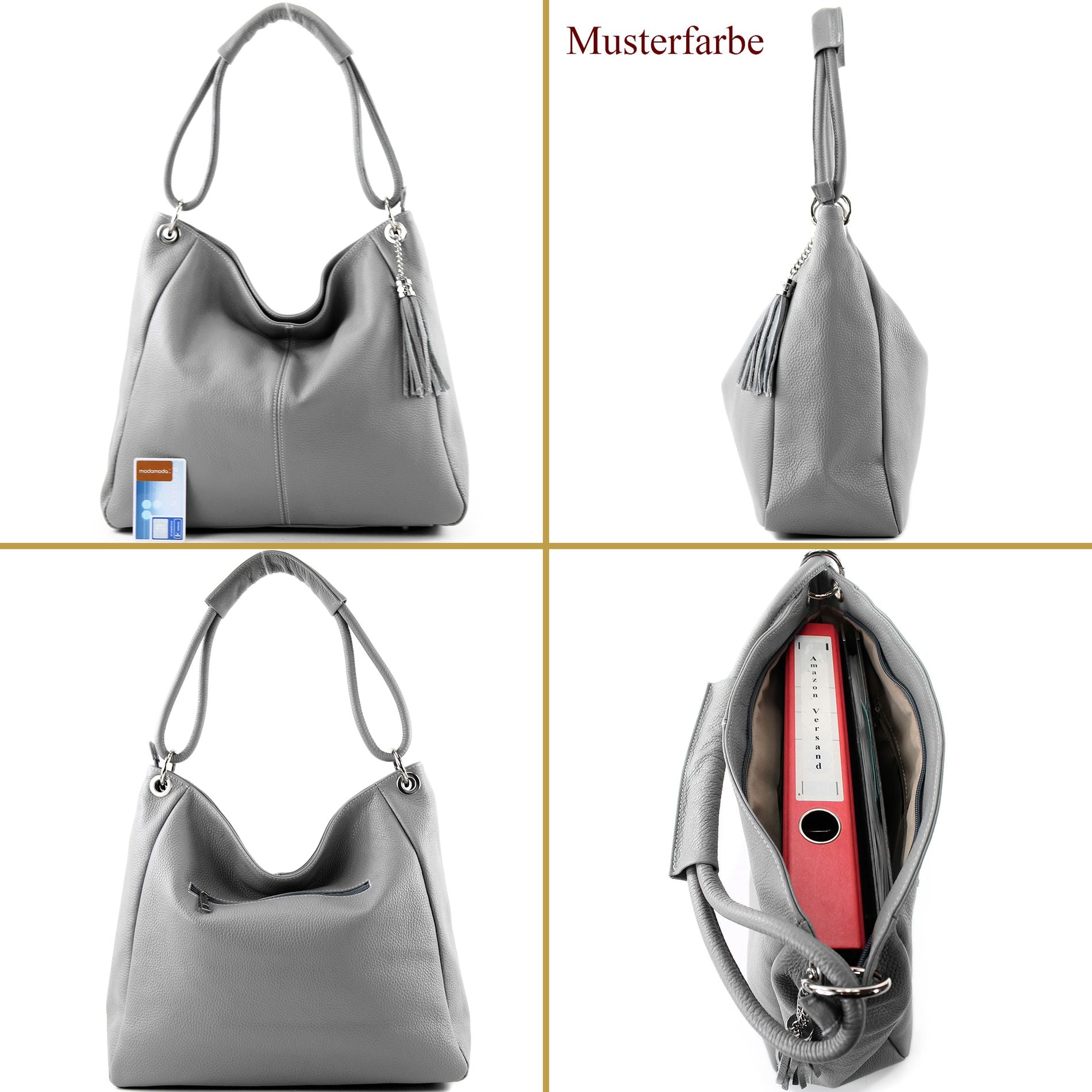 modamoda de - T165 - ital Schultertasche Groß Shopper Leder