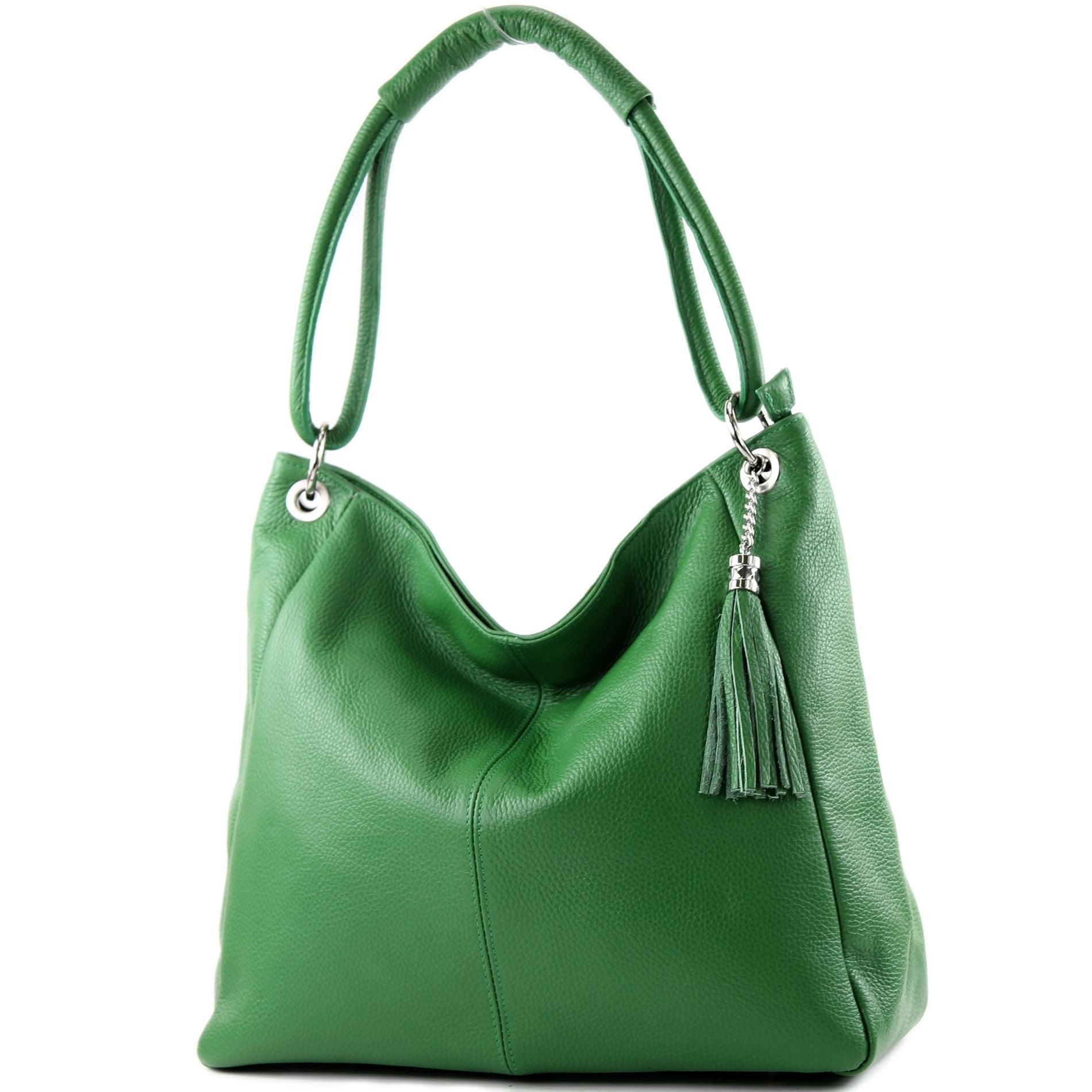 ein großes, geräumiges Hauptfach mit Reißverschluss durch ein Mittelfach ebenfalls mit Reißverschluss geteilt - DIN A4 geeignet (ein schmaler Ordner liegend / zwei breite Ordner stehend) - im Innenraum befinden sich zwei seitliche Steckfächer für Ihr Smartphone geeignet sowie ein seitliches Reißverschluss-Innenfach - ein Außenfach mit Reißverschluss auf der Rückseite - ein abnehmbarer stabiler Tragegriff ca. 57 cm lang - verstärkter Boden mit fünf Metallfüßchen zum Schutz Ihrer Tasche beim Abstellen - Innenmaterial aus festem Stoff (die Farbe des Innenfutters kann je nach Fertigung vom Bild abweichen) - silberfarbene Metallteile - dekorativer, abnehmbarer Lederquasten-Anhänger