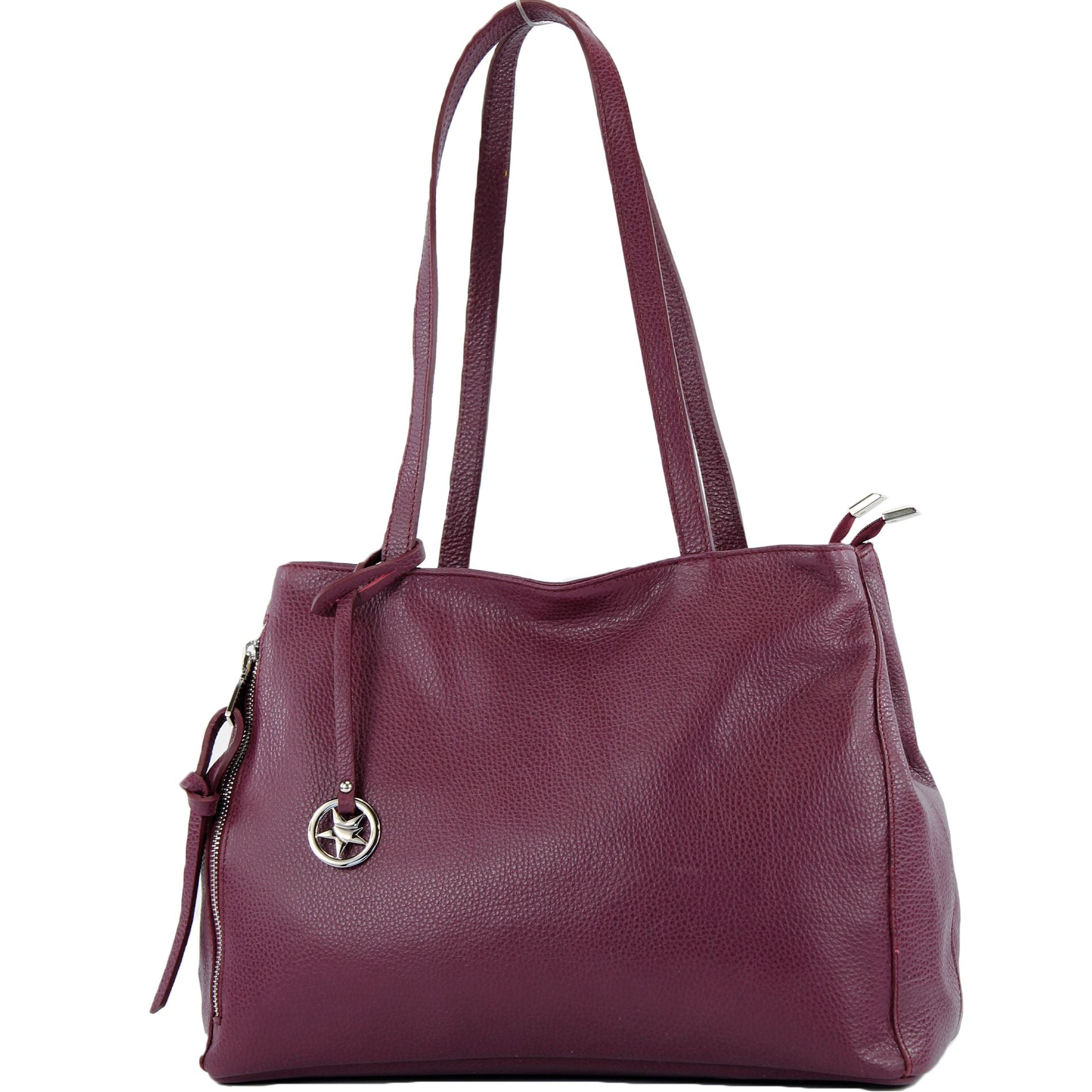 große Damentasche mit langen Tragegriffen (nicht abnehmbar) perfekt zum Schultern für Freizeit und Büro gleichermaßen geeignet - die Tasche ist in zwei große Hauptfächer jeweils mit Reißverschluss geteilt - ein Hauptfach ist mit einem seitlichen Reißverschlussfach, das zweite Hauptfach mit 2 Steckfächern ausgestattet - auf der Vorderseite befindet sich ein Reißverschluss-Außenfach mit dekorativem Lederzipper - ein weiteres Außenfach mit Reißverschluss ist auf der Rückseite angebracht - ein dekorativer abnehmbarer Anhänger aus Leder/Metall befindet sich am Henkel - silberfarbene Metallteile - Innenmaterial aus Stoff - verstärkter Boden - ohne zusätzlichen Schultergurt