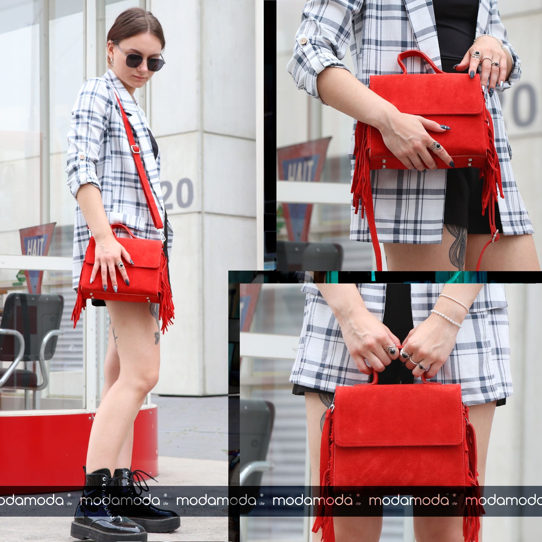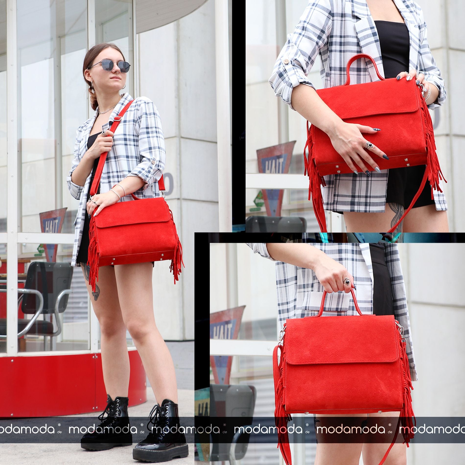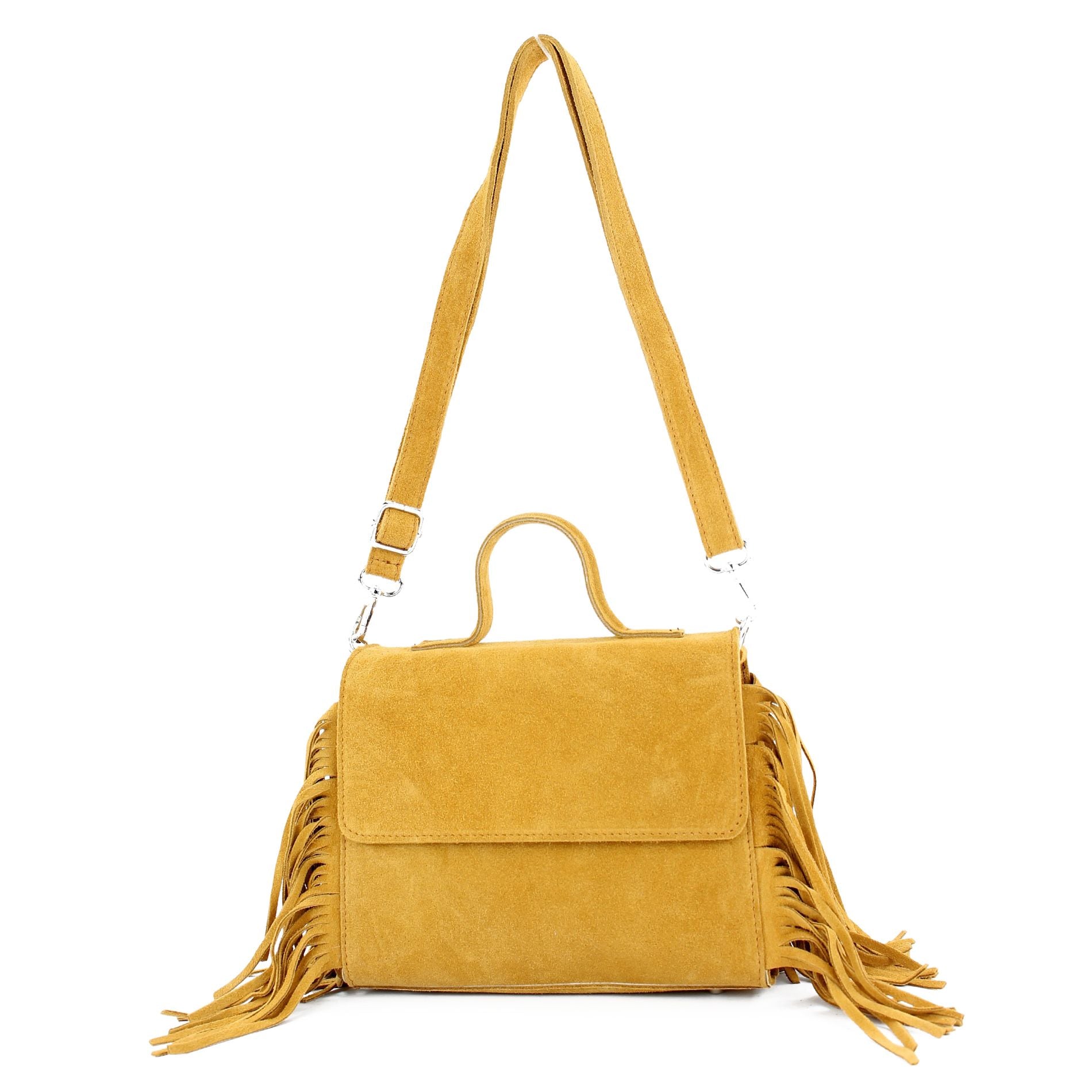 Ital. handgefertigte Damentasche Small und Large aus feinem Wildleder mit seitlich angebrachten Fransen