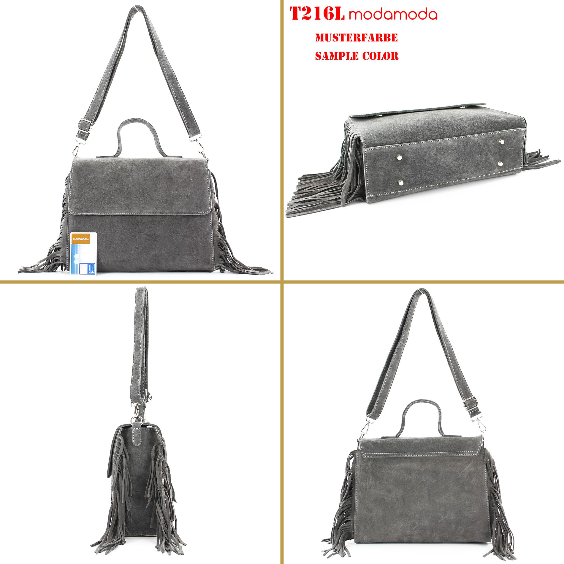 modamoda de - T216 - ital. Umhängetasche Schultertasche aus Wildleder