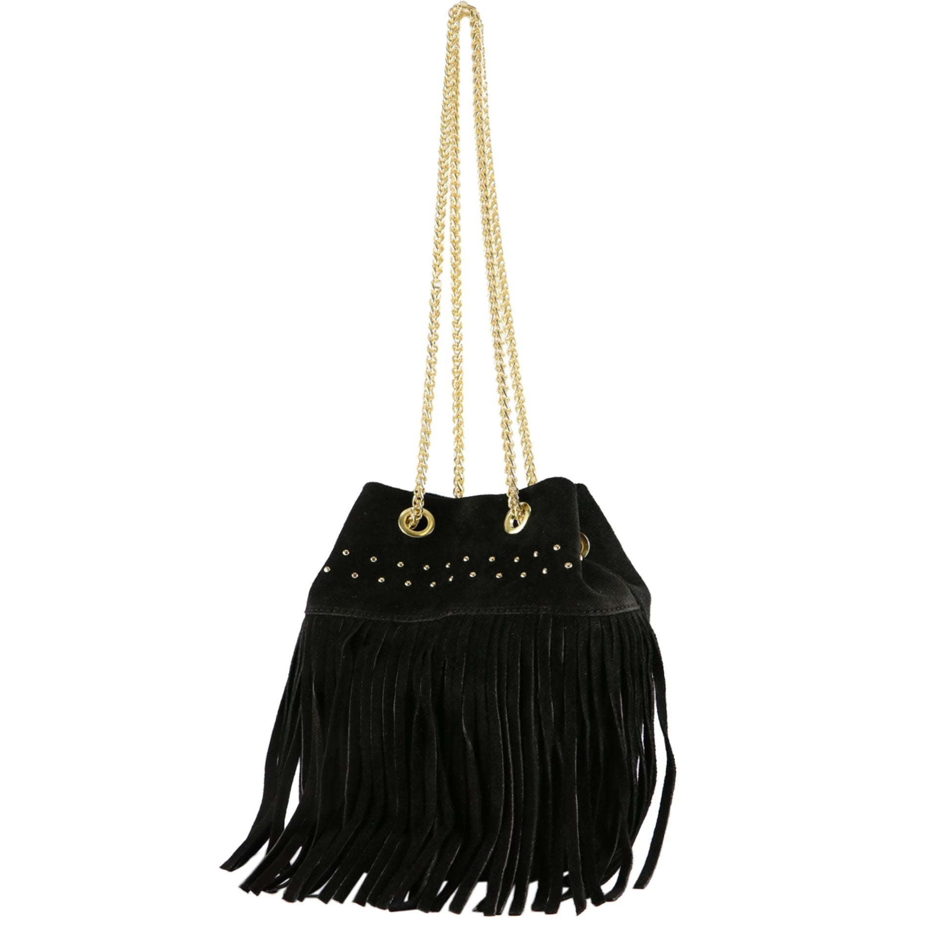 modamoda de T244 Damen Schultertasche Wildleder mit Fransen und Goldkette handmade in Italy