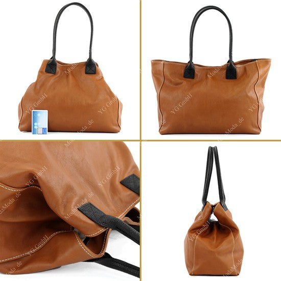 modamoda de - T60 - ital Damen Schultertasche aus Leder Groß